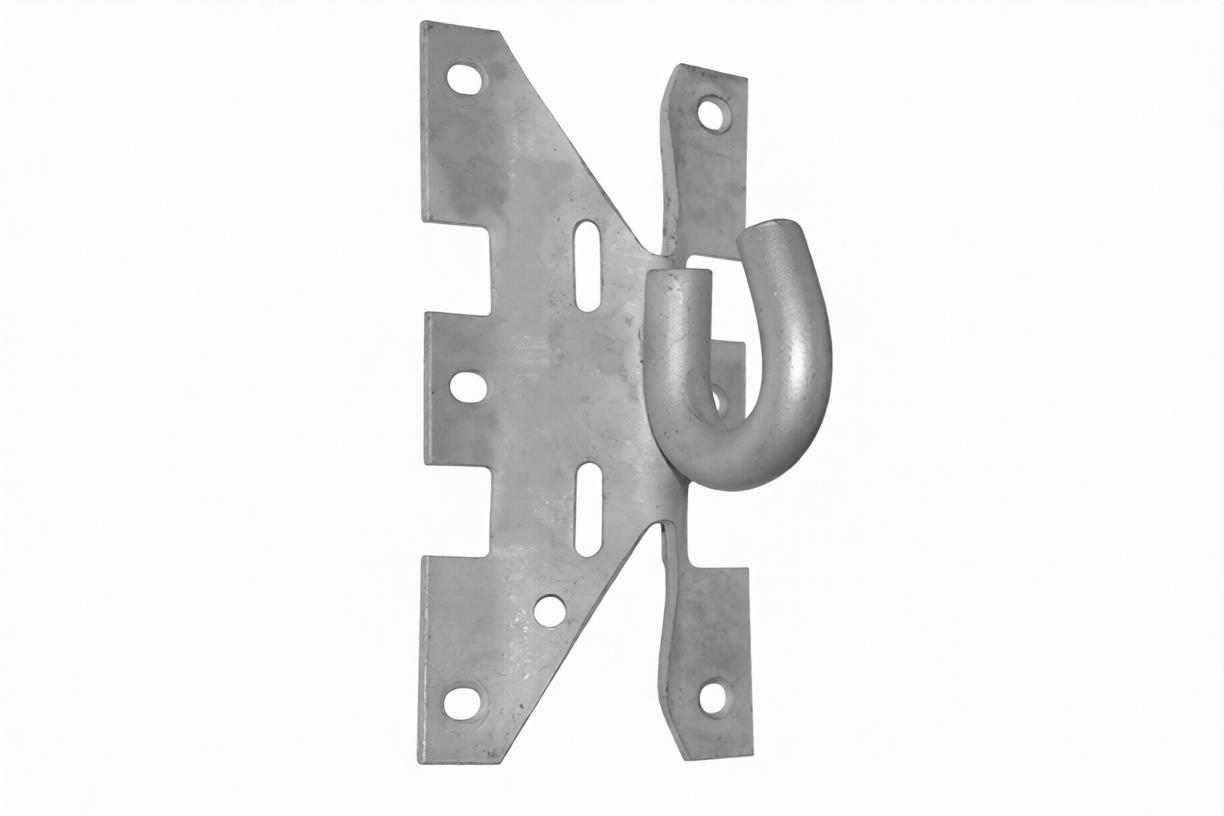 Предназначен для крепления анкерных или поддерживающих зажимов. Имеют дополнительное отверстие для подсоединения проводника заземления. Монтаж производят при помощи ленты F 20 на опору ВЛ или 6 шурупов при установке на стену здания.